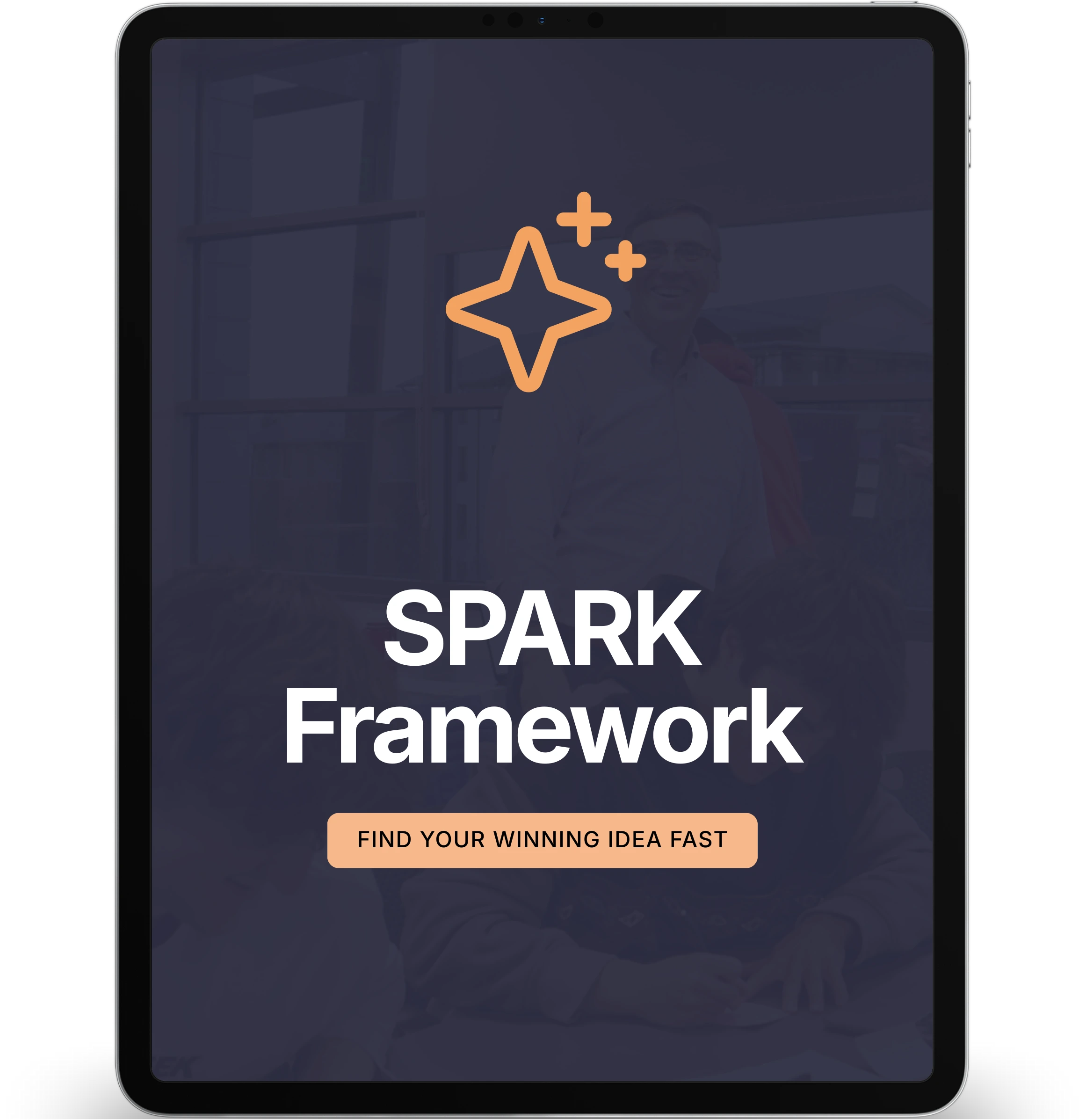 A: Start with the SPARK Framework (included). It's a 5-question system that helps you find an idea worth validating. Takes about 30 minutes.